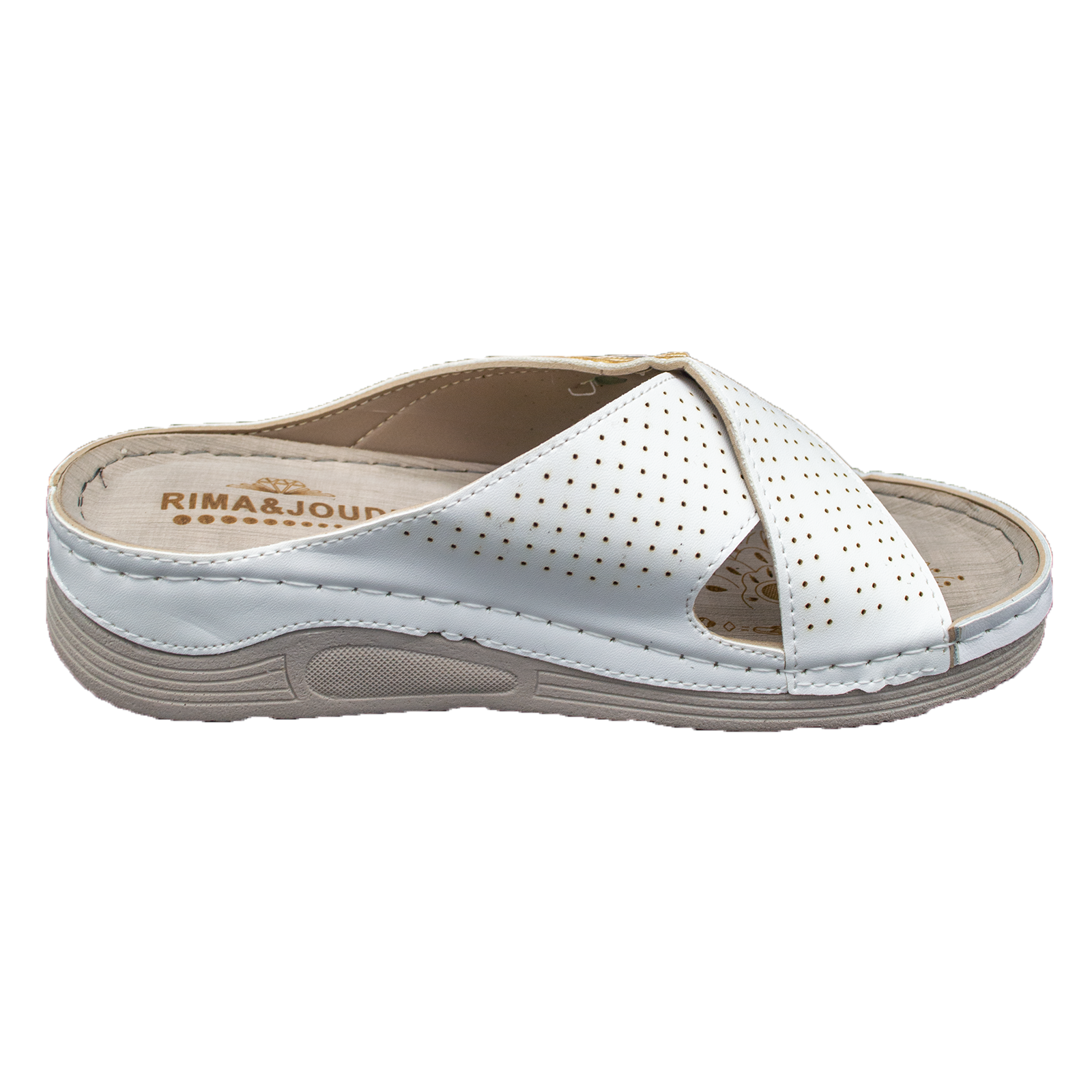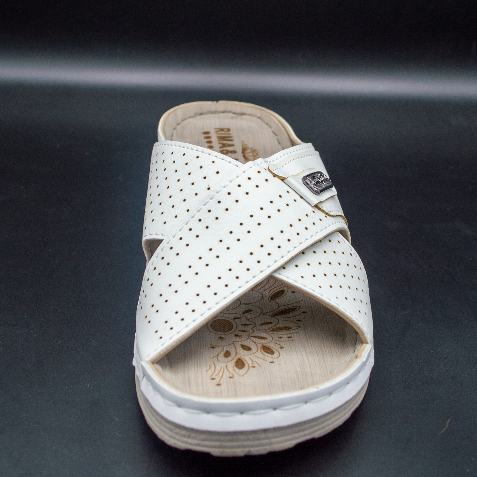 Partea superioara este perforata pentru circularea aerului si este cusuta de talpa pentru a rezista la utilizare continua.